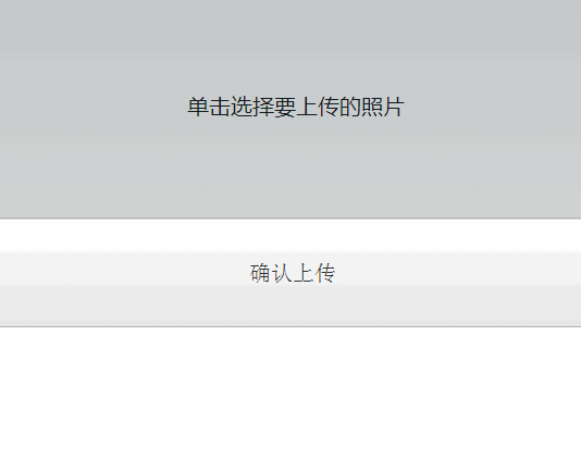 复制代码代码如下: <div id="wp" class="warpper"> <a id="btnSelect">单击选择要上传的照片</a> <input id="uploadFile" type="file" name="myPhoto" /> <button id="btnConfirm" class="btn" >确认上传</button> </div> <div id="maskLayer" class="mask-layer" style="display:none;"> <p>图片正在上传中...</p> </div>