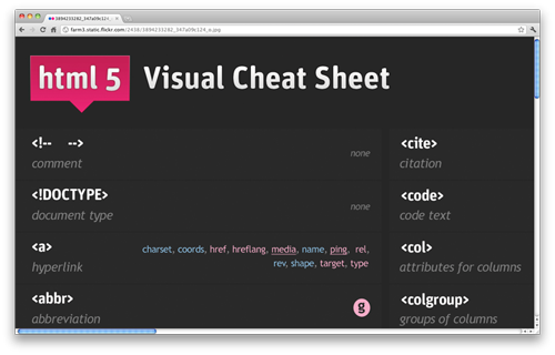 想要快速超找一个标签或者属性吗?看看这个非常酷的速查手册吧,每个Web开发人员的必备。