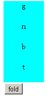 复制代码代码如下: <!DOCTYPE html> <html> <head> <meta http-equiv="Content-Type" content="text/html; charset=UTF-8"> <title>fold paper effect by gt-柯乐义</title> <style> #wrapper { -webkit-perspective: 55cm; -webkit-perspective-origin: 50% 50%; text-align: center; } .paper { position: relative; height: 40px; width: 5em; margin: 0; background-color: aqua; -webkit-transition: -webkit-transform 1s linear; } </style> <script type="text/javascript"> window.angel = 0; window.timer; function fold() { var foldUp = document.getElementById("foldUp"); var foldDown = document.getElementById("foldDown"); var down = document.getElementById("down"); if (window.angel == 0) { window.timer = setInterval(function() { var diff = different(-1, 20); console.log(foldUp.offsetTop) move(foldUp, diff, 1); move(foldDown, diff, 3); move(down, diff, 4); }, 40); setTimeout(function() { clearInterval(window.timer); foldUp.style.top = "-20px"; foldDown.style.top = "-60px"; down.style.top = "-80px"; window.angel = -90; }, 1030); foldUp.style.webkitTransform = "rotateX(-90deg)"; foldDown.style.webkitTransform = "rotateX(90deg)"; } else if (angel == -90) { window.timer = setInterval(function() { var diff = different(1, 20); console.log(foldUp.offsetTop) move(foldUp, diff, 1); move(foldDown, diff, 3); move(down, diff, 4); }, 40); setTimeout(function() { clearInterval(window.timer); foldUp.style.top = "0"; foldDown.style.top = "0"; down.style.top = "0"; window.angel = 0; }, 1030); foldUp.style.webkitTransform = "rotateX(0deg)"; foldDown.style.webkitTransform = "rotateX(0deg)"; } else { console.log(window.angel) } } function positionValue(div, type) {// 得到css带单位的值 var str = div.style[type]; str = str.substring(0, str.length - 2); var value = parseInt(str); if (isNaN(value)) { value = 0; } return value; } function move(div, different, time) { var top = positionValue(div, "top"); div.style.top = top + different * time + "px"; } function different(direction, height) { var lastAngel = window.angel; window.angel += 3.6 * direction; var different = Math .ceil((Math.cos(window.angel / 180 * Math.PI) - Math .cos(lastAngel / 180 * Math.PI)) * height * 100) / 100; return different; } </script> </head> <body> <div id="wrapper"> <div id="up" class="paper"> g </div> <div id="foldUp" class="paper"> n </div> <div id="foldDown" class="paper"> b </div> <div id="down" class="paper"> t </div> </div> <button onclick=fold();> fold </button> </body> </html>
