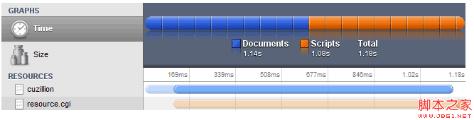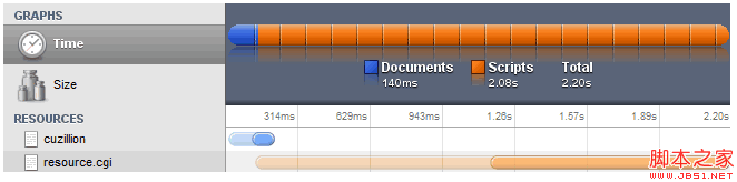 下面展示的是一个需要1秒来下载,以及1秒来解析执行其他操作的例子,我们可以看到整个页面载入花了大约2秒钟。