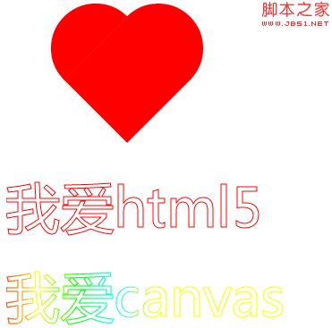 复制代码代码如下: <script language="javascript"> var cxt=document.getElementById('demo').getContext("2d"); cxt.beginPath(); cxt.arc(100,100,50,Math.PI*0.75,Math.PI*1.75,false);/*绘制一段半圆弧线,圆心坐标是100,100;开始弧度是0.75,结束弧度是1.75,最后一个参数False = 顺时针,true = 逆时针,当然,这个参数可选的*/ cxt.fillStyle="#F00";/*选择使用的颜色*/ cxt.fill();/*真正将图形画在画布上的一步,画第一个半圆*/ /*同理绘制第二个半圆*/ cxt.beginPath(); cxt.arc(170,100,50,Math.PI*1.25,Math.PI*0.25,false); cxt.fillStyle="#F00"; cxt.fill();/*将绘制的图形画在画布上*/ cxt.beginPath(); /*将画布顺时针旋转45度,rotate函数的参数是弧度,所以要进行转换*/ cxt.rotate(45*Math.PI/180); cxt.fillRect(141.1,-50,100,100);/*开始坐标为141.1,-50,宽和高都是100*/ cxt.fillStyle="#F00"; cxt.fill(); cxt.beginPath(); /*将画布旋转到正常的角度*/ cxt.rotate(-45*Math.PI/180); cxt.font="60px 微软雅黑"; cxt.strokeStyle="#f00"; cxt.strokeText("我爱html5",0,300);/*两个参数,第一个是开始绘制文本的x轴坐标,第二个是开始绘制文本的Y坐标*/ cxt.stroke(); /*创建渐变*/ var grd=cxt.createLinearGradient(0,45,175,50);/*四个参数分别是渐变开始点x、y渐变结束点x、y*/ grd.addColorStop(0,"#FF0000"); grd.addColorStop(0.25,"#FFFF00"); grd.addColorStop(0.5,"#00FF00"); grd.addColorStop(0.75,"#00FFFF"); grd.addColorStop(1,"#FFFF00"); cxt.strokeStyle=grd; cxt.strokeText("我爱canvas",0,400);/*两个参数,第一个是开始绘制文本的x轴坐标,第二个是开始绘制文本的Y坐标*/ cxt.stroke(); </script>
