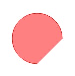 和lineTo一样,arc也是画的路径,所以我们要在他后面调用填充或描边的方法才能显出图形(图中采用了红色的strokeStyle与半透明红色的fillStyle)。