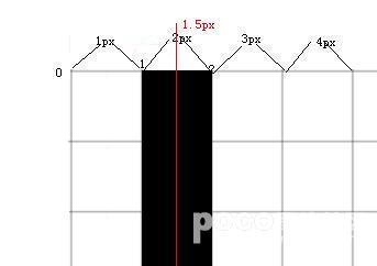 每个像素都有起止范围,如图所示,他们的范围从左起,跨过1像素,到右止。