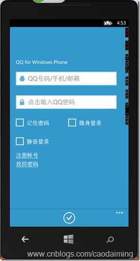 <toolkitPrimitives:PhonePasswordBoxCheckBox Content="记住密码" HorizontalAlignment="Left" Margin="12,195,0,0" VerticalAlignment="Top" HorizontalContentAlignment="Left" /> <toolkitPrimitives:PhonePasswordBoxCheckBox Content="隐身登录" HorizontalAlignment="Left" Margin="224,195,0,0" VerticalAlignment="Top" /> <toolkitPrimitives:PhonePasswordBoxCheckBox Content="静音登录" HorizontalAlignment="Left" Margin="12,272,0,0" VerticalAlignment="Top" /> <HyperlinkButton Content="注册帐号" HorizontalAlignment="Left" Margin="12,349,0,0" VerticalAlignment="Top" HorizontalContentAlignment="Left" /> <HyperlinkButton Content="找回密码" HorizontalAlignment="Left" Margin="12,385,0,0" VerticalAlignment="Top" HorizontalContentAlignment="Left" />