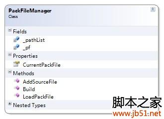 一个管理器类,提供一些外围的方法 _pathList用于存放要添加到包文件的文件路径,通过调用AddSourceFile()方法添加 _pf 是具体的包文件,通过LoadPackFile() 生成实例,通过CurrentPackFile属性返回 Build方法用于生成包文件