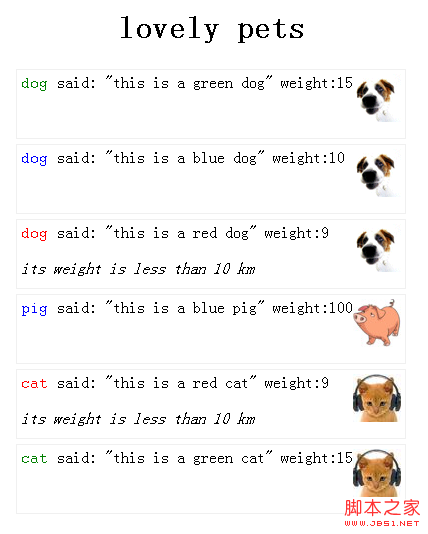 <dog color="blue" weight="10"> <price>100</price> <desc>this is a blue dog</desc> </dog> <dog color="red" weight="9"> <price>80</price> <desc>this is a red dog</desc> </dog> </pets>