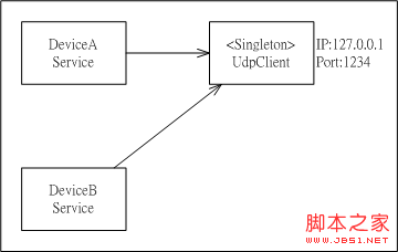 将Singleton Pattern套用在系统内所使用的UdpClient物件上,可以写出上列的程序代码,系统内所使用的UdpClient对象都是取用到系统内一个静态存放的共享UdpClient对象。这段程序代码内容可以通过编译程序的检查,并且在执行时也不会出现SocketException的例外通知,因为套用Singleton Pattern让系统内只会开启UDP套接字点一次。