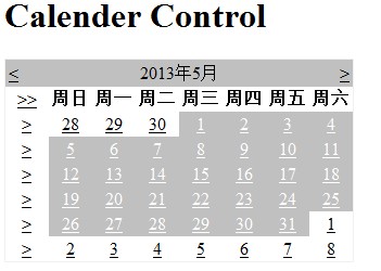 Calender.aspx.cs 复制代码 代码如下: using System; using System.Collections.Generic; using System.Linq; using System.Web; using System.Web.UI; using System.Web.UI.WebControls;