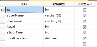 SELECT ID, iLevel, sErrorTime, sLastErrorTime, sPassword, sUserName FROM T_userInfo WHERE (ID = @ID)
