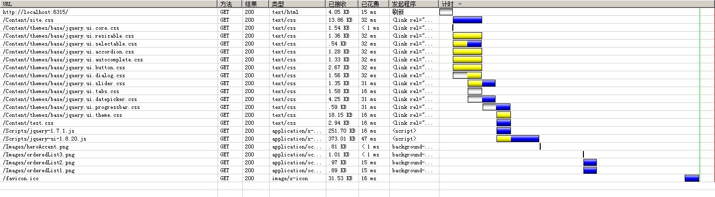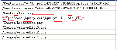 复制代码 代码如下: public class BundleConfig { // For more information on Bundling, visit http://go.microsoft.com/fwlink/?LinkId=254725 public static void RegisterBundles(BundleCollection bundles) { bundles.Add(new ScriptBundle("~/bundles/jquery").Include( "~/Scripts/jquery-{version}.js")); bundles.Add(new ScriptBundle("~/bundles/jqueryui").Include( "~/Scripts/jquery-ui-{version}.js")); bundles.Add(new ScriptBundle("~/bundles/jqueryval").Include( "~/Scripts/jquery.unobtrusive*", "~/Scripts/jquery.validate*")); // Use the development version of Modernizr to develop with and learn from. Then, when you're // ready for production, use the build tool at http://modernizr.com to pick only the tests you need. bundles.Add(new ScriptBundle("~/bundles/modernizr").Include( "~/Scripts/modernizr-*")); bundles.Add(new StyleBundle("~/Content/css").Include("~/Content/site.css")); bundles.Add(new StyleBundle("~/Content/themes/base/css").Include( "~/Content/themes/base/jquery.ui.core.css", "~/Content/themes/base/jquery.ui.resizable.css", "~/Content/themes/base/jquery.ui.selectable.css", "~/Content/themes/base/jquery.ui.accordion.css", "~/Content/themes/base/jquery.ui.autocomplete.css", "~/Content/themes/base/jquery.ui.button.css", "~/Content/themes/base/jquery.ui.dialog.css", "~/Content/themes/base/jquery.ui.slider.css", "~/Content/themes/base/jquery.ui.tabs.css", "~/Content/themes/base/jquery.ui.datepicker.css", "~/Content/themes/base/jquery.ui.progressbar.css", "~/Content/themes/base/jquery.ui.theme.css")); } }