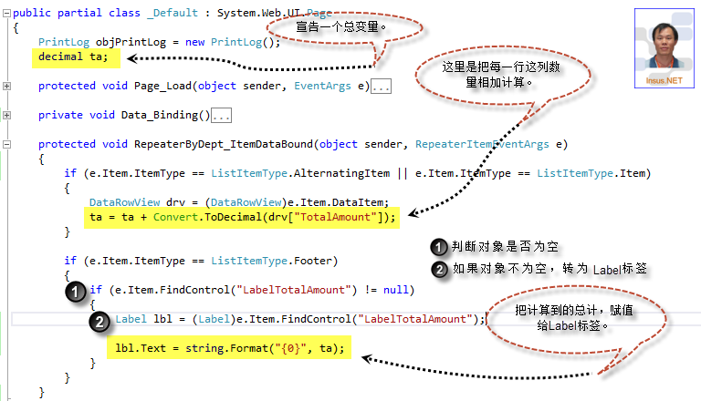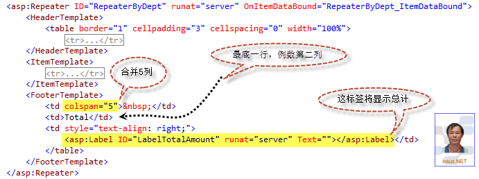 练习一个小功能,在Repeater的FooterTemplate显示某列总计,参考下图最底Highlight一行。