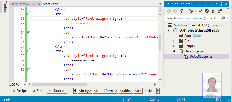 记住这些信息,可以使用Cookie来实现,更多Cookie应用,可参考 http://jb51.net/article/33590.htm http://jb51.net/article/33591.htm 现在我们来模拟一个登录介面: 复制代码 代码如下: <table> <tr> <td style="width: 15%; text-align: right;"> User Name </td> <td> <asp:TextBox ID="TextBoxUserName" runat="server"></asp:TextBox> </td> </tr> <tr> <td style="text-align: right;"> Password </td> <td> <asp:TextBox ID="TextBoxPassword" TextMode="Password" runat="server"></asp:TextBox> </td> </tr> <tr> <td style="text-align: right;"> Remember me </td> <td> <asp:CheckBox ID="CheckBoxRememberMe" runat="server" /> </td> </tr> <tr> <td style="text-align: right;"> </td> <td> <asp:Button ID="ButtonLogin" runat="server" Text="Login" OnClick="ButtonLogin_Click" /> </td> </tr> </table>