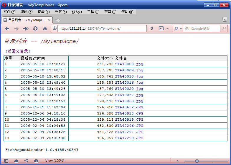 刚才我说到我的工具可以支持在任何文件夹上右击并加载为网站。是的,我没瞎说,就算那个目录不是个ASP.NET程序目录,是一个普通的文件目录,或者是一个静态网页的目录,都是可以的,此时就和IIS的行为一样了,如果请求的是静态页面,就显示静态页面,遇到目录时,就列目录。而且此时的运行速度会比ASP.NET程序更快哦。原因很简单:此时不加载ASP.NET运行时环境。