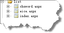 而通过以下方式将Route添加到RouteTable.Routes中 RouteTable.Routes.Add(new Route()); 以上代码仅为表示其流程,这个代码是不能正确执行的,因为Route没有提供无参构造函数。 Route初始化时则是利用RouteValueDictionary来加入默认值及规则到Route中 另外Route还有一个IRouteHandler的实现对象,IRouteHandler的实现对象提供了一个GetHttpHandler方法来获取用于处理URL的IHttpHandler。 这么说还是停留在抽象层次的,下面我们以一些简单例子来带你驭起UrlRouting。 准备工作 由于须要一个处理Url的IHttpHandler所以我们先定义一个实现了IHttpHandler接口的类。 就叫它MyPage,由于我们要与IRouteHandler交互,所以除了实现IHttpHandler的方法之外还要声明一个RequestContext类型的属性。 复制代码 代码如下: public class MyPage:IHttpHandler { public RequestContext RequestContext { get; private set; } public MyPage(RequestContext context) { this.RequestContext = context; } #region IHttpHandler 成员 public virtual void ProcessRequest(HttpContext context){} public bool IsReusable { get { return false; } } #endregion } 这样我们就拥有了一个自己的IHttpHandler。 下面我们实现一个IRouteHandler: 复制代码 代码如下: public class MyRouteHandler : IRouteHandler { #region IRouteHandler 成员 public IHttpHandler GetHttpHandler(RequestContext requestContext) { return new MyPage(requestContext); } #endregion } 这里实现了IRouteHandler的GetHttpHandler方法,使之返回刚才我们实现的MyPage。 这样我们前期的2个工作就做完了,我们可以来实现UrlRouting了。 实现第一个UrlRouting 其实UrlRouting在定义完上两个规则后就很简单了。 在Golbal.asax(没有可以新建一个)的Application_Start事件中写如下代码 复制代码 代码如下: protected void Application_Start(object sender, EventArgs e) { RegisterRoutes(RouteTable.Routes); } public static void RegisterRoutes(RouteCollection routes) { routes.Add(new Route("{page}.aspx",new MyRouteHandler())); } 这样我们就定义了第一个UrlRouting规则就是对xxxx.aspx这类的Url进行Routing。 但是我们仅仅是定义了处理了什么样的Url,却没定义如何处理。 我们应该在刚刚定义的MyPage的ProcessRequest方法中定义如何处理。 我们将ProcessRequest方法实现如下: 复制代码 代码如下: public virtual void ProcessRequest(HttpContext context){ context.Server.Execute( RequestContext.RouteData.Values["page"].ToString().Replace("_","/")+".aspx" ); } 很显然这里的RequestContext.RouteData.Values["page"]就是取到刚才的规则{page}.aspx中的page的值即,如果我访问index.aspx则RequestContext.RouteData.Values["page"]就是index。 我这里的定义是将”_”替换为”/”所以就是将list_index.aspx这样的URL转到list/index.aspx这样的网页上。 我们建立一些测试用的网页如下图所示: