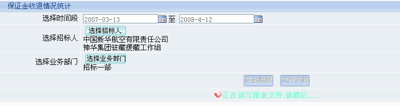 整个过程采用AJAX提示的,一来不刷新,二来导出时间比较长的话,可以给客户一个良好的体验效果,否可,用户一点导出按钮,半天没反应也没提示,客户就觉得怎么这么慢的,是不是你们程序有问题,指责一大堆,有了这么些交互提示信息,让客户多等几分钟也能承受。