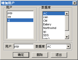 3、 读取当前用户有权限的数据库:每个数据库有权限的用户在每个数据的sysusers表中。void CUser::OnSelchangeUserList()