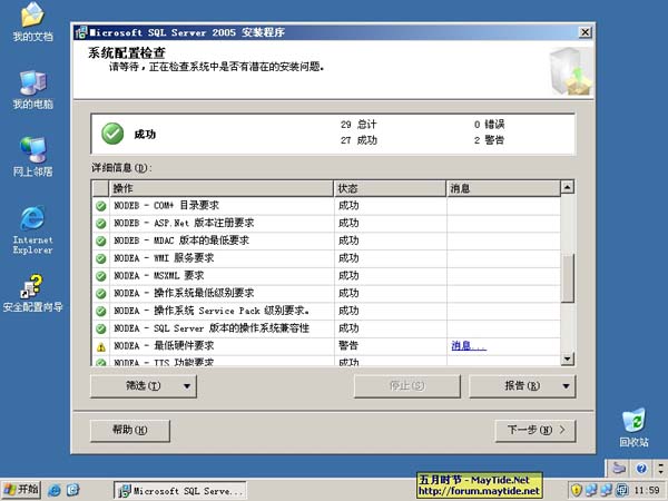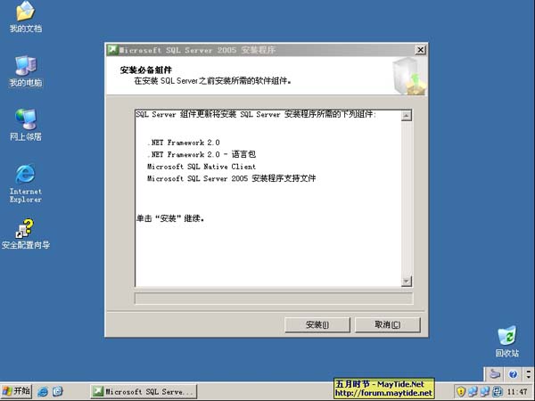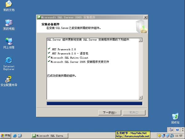 3、SQL2005在进行初始检测后开始执行安装 SQL2005 所需组件。