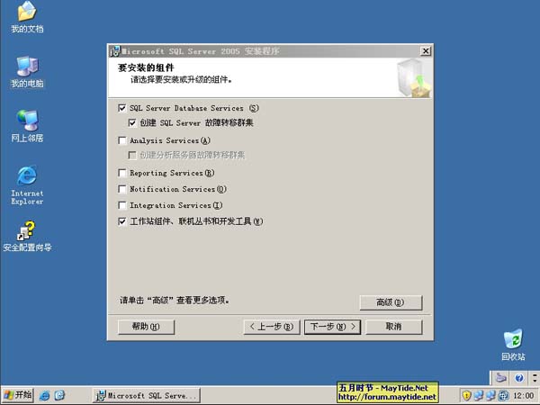 1、我手上的SQL2005为企业中文版2CD。首先放入第一张盘,点击“服务器组件、工具、联机丛书和示例”开始SQL2005的群集安装,安装程序会自动检测当前是否为群集环境并为群集安装准备。小提示:MSCS默认环境下,群集组资源中缺少MSDTC组件,所以需要先添加MSDTC后再开始SQL2005的群集安装,否则会出现警告并停止!