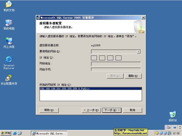 目标实现:成功部署 SQL Server 2005 群集/HostName SQL2005/IP192.168.199.201