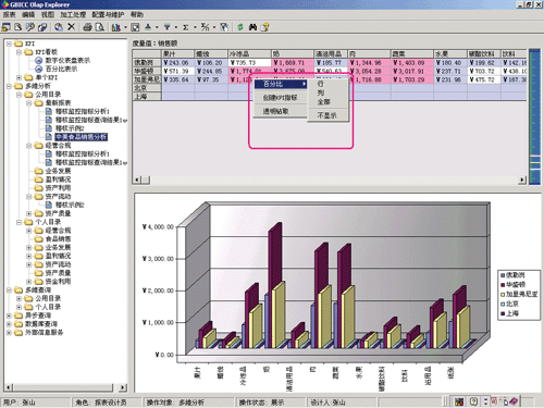 在财务指标预警系统构建中,吉贝克采用 Oracle 数据库,微软 Analysis Services 为多维服务器, OLAP Explorer (OE) 为前端展现工具,辅以多种统计学算法和财务分析方法,成功地实现了财务指标预警系统的目标,实现的主要功能如下: