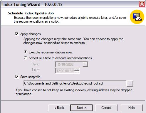 接着,你可选择是让SQL Server立即应用更改(如图H所示),还是安排在以后某个时间进行。另外,还可将包含了推荐更改的一个脚本保存下来。