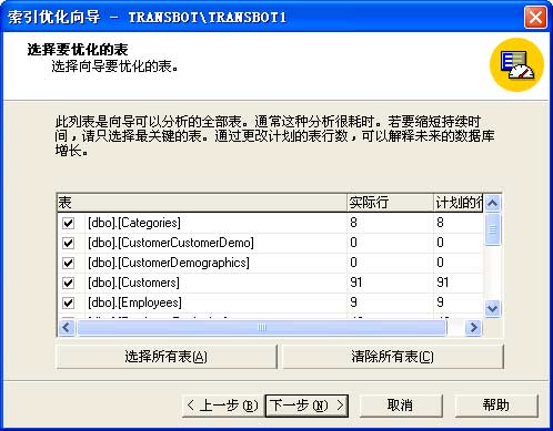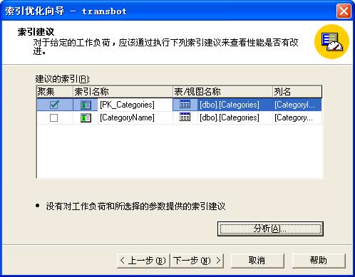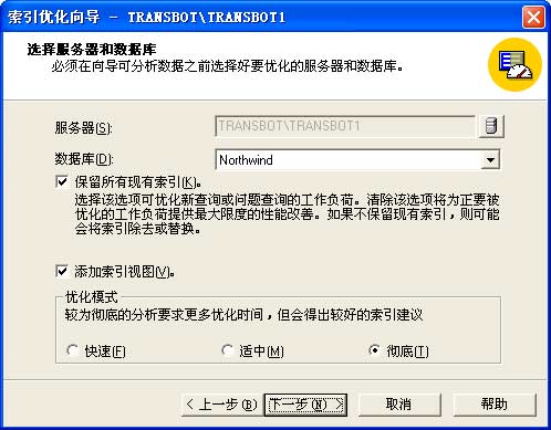 还可在图B中撤选或选择【保留所有现有索引】复选框。如果撤选,SQL Server就会尽最大努力来推荐最佳的索引架构,但同时也会增加操作时间,而且会对数据库带来最高的负荷。