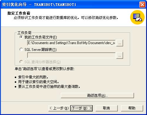 如图C所示,你可使用文件或数据库跟踪来初始化向导。第3个选项(在图C中呈现灰色不可用状态)只有在你从查询分析器中运行ITW时才可使用。显然,查询分析器允许你定位一个较小的问题集,而不必面对一个包容面更广的事件探查器跟踪。