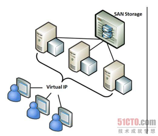 尽管SQL Server 2005分析服务器多维数据集通常是只读的数据库,但是每一个实例只维护自己的数据目录。尽管你可以通过在多个服务器上同步多维数据集来创建分析服务数据库的多个拷贝,但是多维数据集同步过程导致了许多业务环境中不能接受的延迟情况。SQL Server 2008分析服务通过支持部署扩展分析服务,从而克服了这些问题,在部署过程中,分析服务数据库的一个单独的、统一的、只读的拷贝将在多个实例间共享,并通过一个单独的虚拟IP地址来访问,如图2所示。