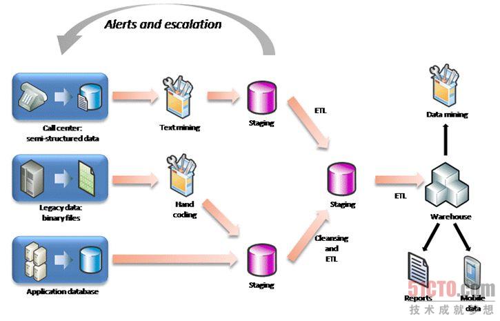 技术挑战首先来自于源系统。我们正在从收集交易(如客户承诺获取、购买或以其他方式获得东西)数据向收集预交易(如网页点击或通过 RFID 标记追踪客户意图的机制)数据转变。现在不仅可以通过传统的源和格式(如数据库和文本文件)获取数据,而且正日益可以以各种不同的格式(从专有文件到 Microsoft Office 文档以及基于 XML 的文件)和基于 Internet 的源(如 Web 服务和 RSS 流)获取数据。最具针对性的挑战是: