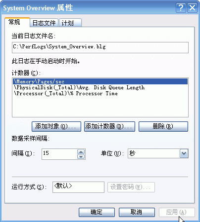 在窗口中的 “添加对象” 和 “添加计数器” 按钮分别单击一次,但单击后显示的窗口不要去动,直接选择取消。