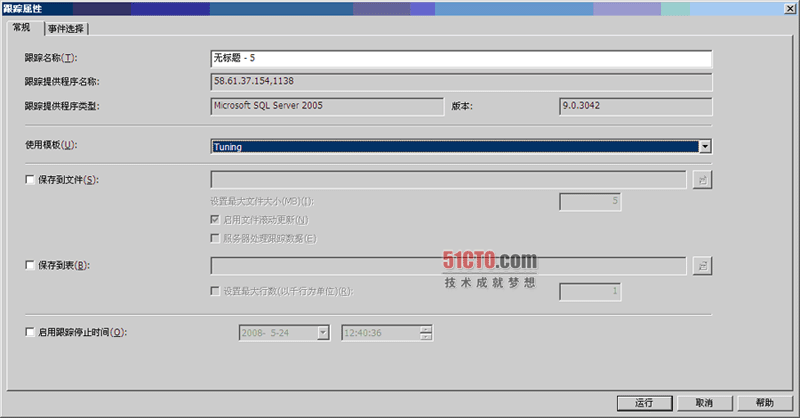 为了进一步把问题锁定到更精确地位置,笔者开启了SQL Server Profiler进行跟踪,如下图,由于是性能检测,所以选用了Tuning模板,如下图: