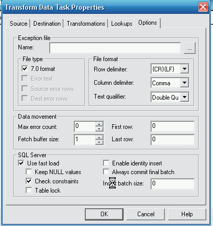 为了给他找到解决办法,我在DTS向导中转悠。发现解决方案已内置在DTS中。
